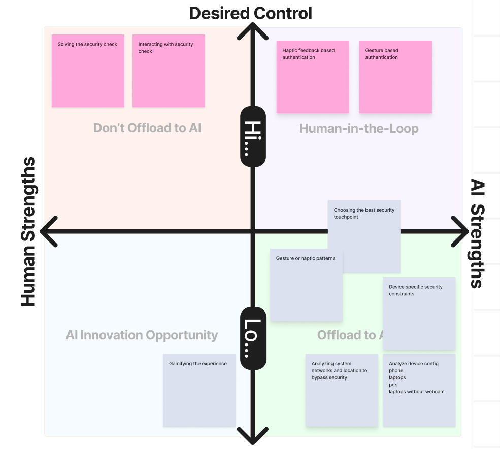 Through this mapping, I explored how AI can handle repetitive verification tasks while humans provide emotional and situational input.