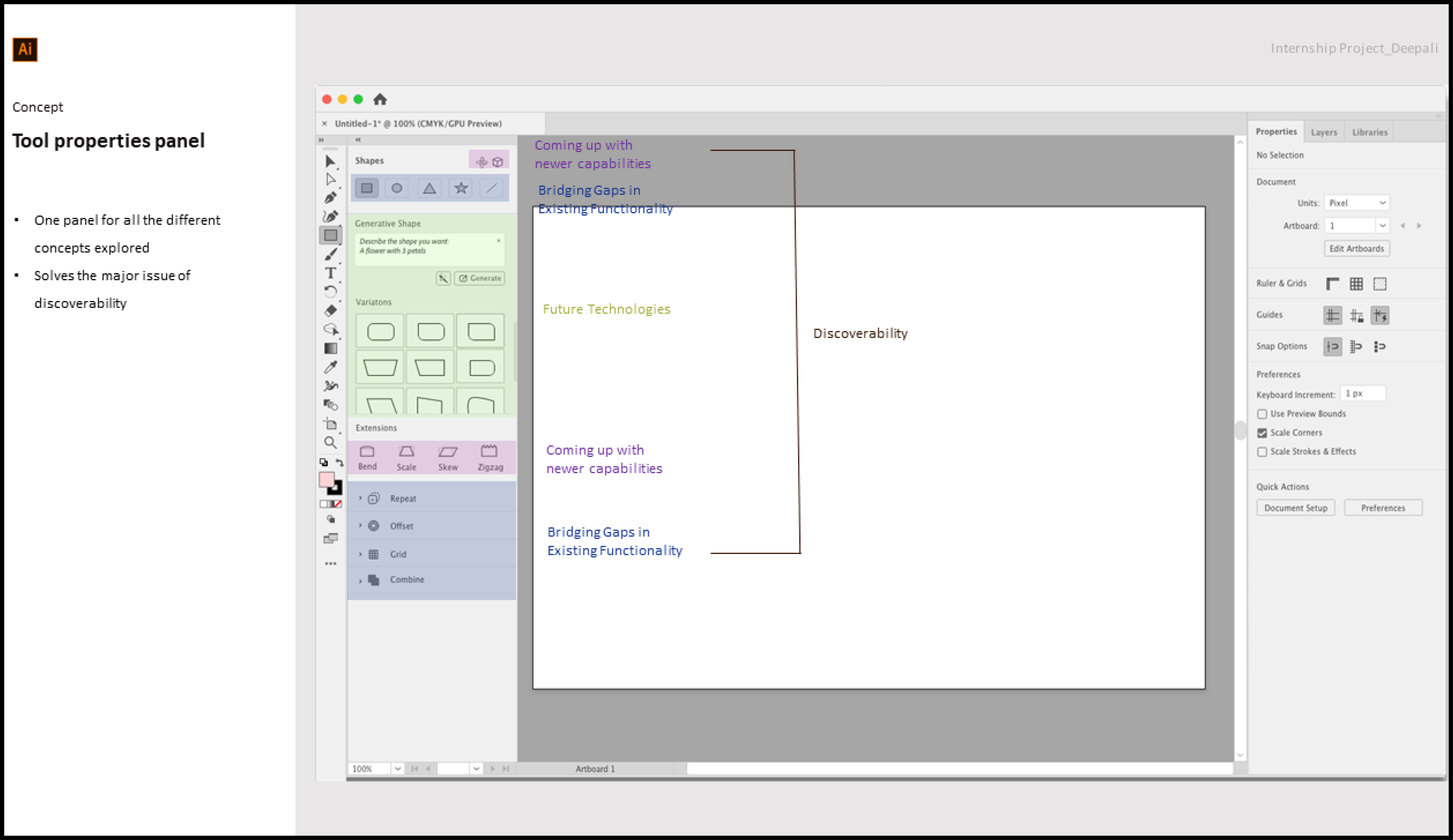 One key insight was that while Illustrator offers many powerful features, users often struggled with discoverability, finding it hard to access tools they needed. This challenge became the core focus.